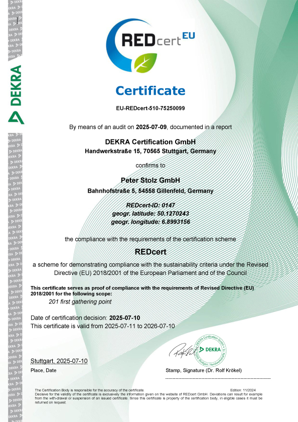 Durch die Teilnahme am RED Cert System erfüllen wir diese Verordnung zur Zertifizierung der von uns gehandelten Biomassegütern.